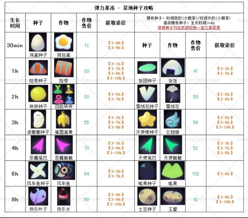 以下内容源自未兔大佬整理,包含所有种子的作物、售价及获取方式。