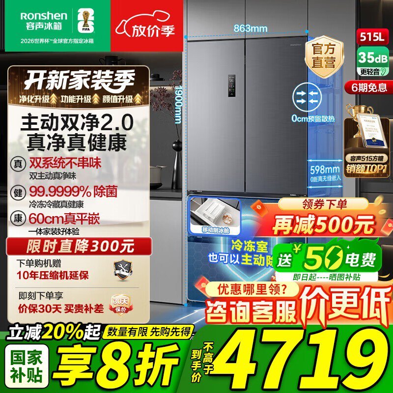 容声515L风冷法式冰箱,低至4249元!