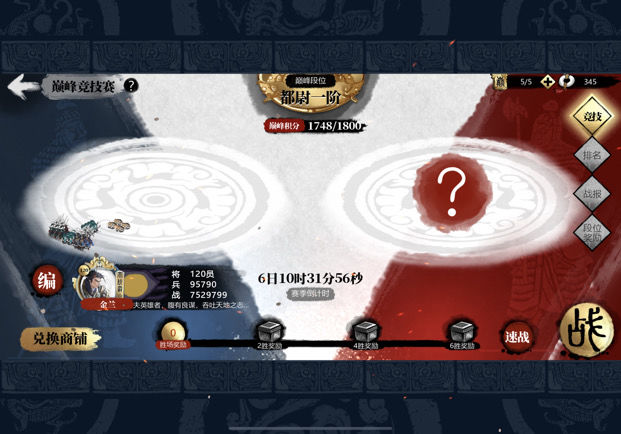 连胜五场后,若胜算较高,可花30元宝购买一场胜利,达成六连胜,新手建议暂不尝试。