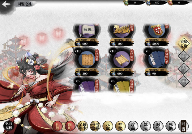 先用盟战功点换金环三结。