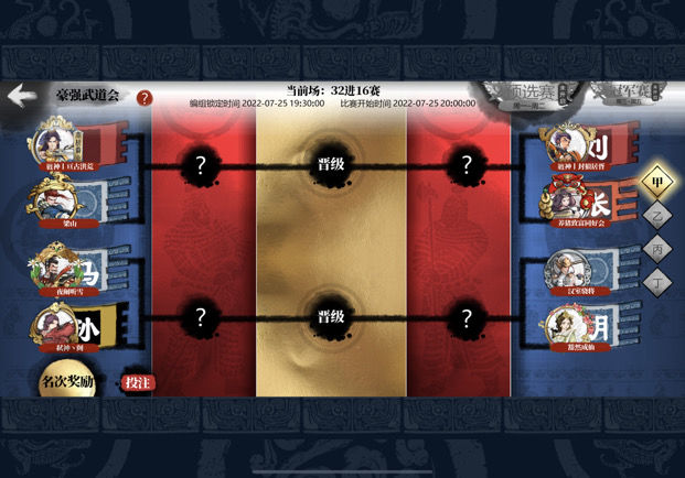 天下会武采用连胜赛制,建议将最强的56名选手集中编入第一梯队。