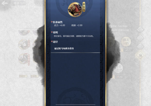 若需提升武力输出,应选择基础为6武2统的马匹(即最高属性的6武马),优先配备专属武器,若无专武则选用高武力值的武器(图纸中包含所有武力类武器)。