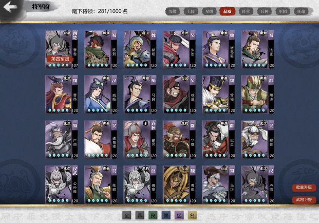 府邸等级与武将上限相关,需均衡提升一队府邸等级,确保武将获得更高成长空间。