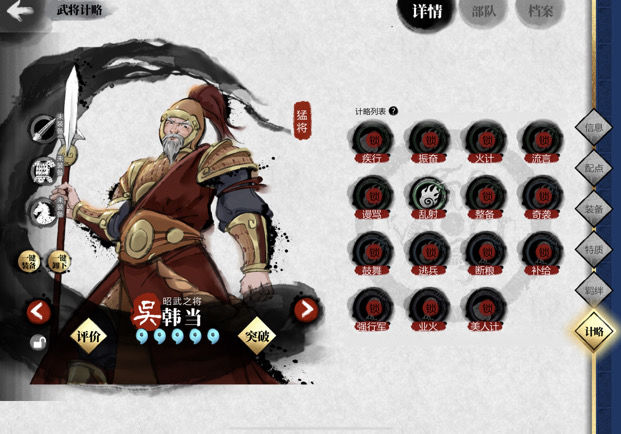 点击任意武将,可查看其拥有的计略及解锁所需条件。
