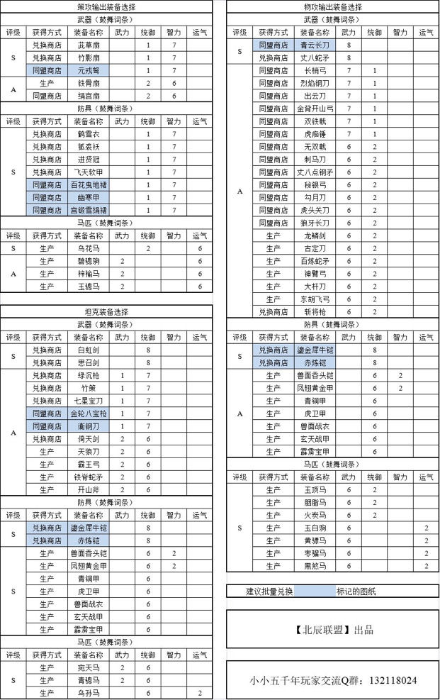 这张装备搭配表出自攻略王王XX,稍后我偷来贴上。