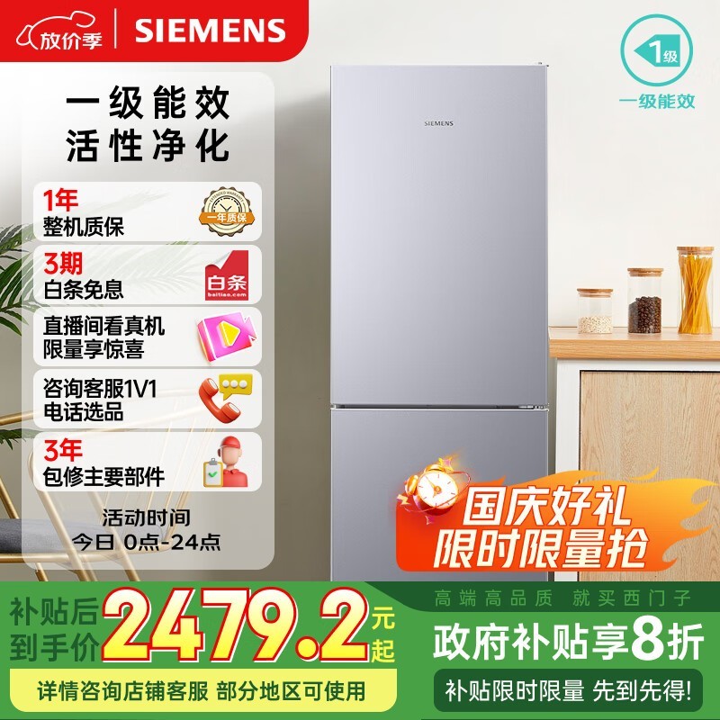 西门子279升风冷冰箱直降619元