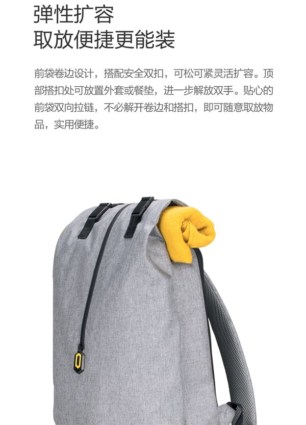 2 色可选,采用 650D 牛津布材质,四级防泼水处理,底部特别添加防水涂层,持久整洁。