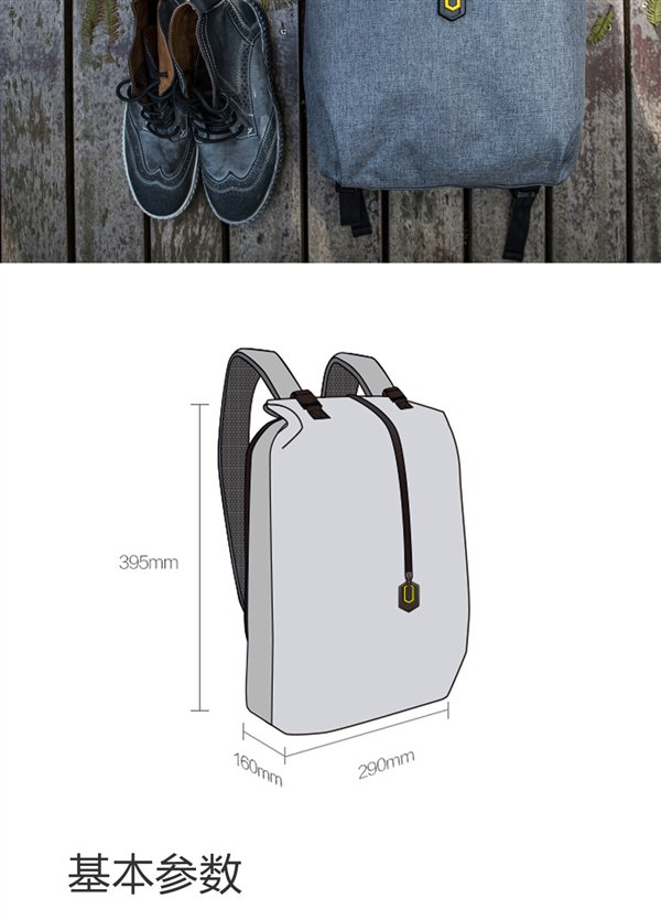 尺寸 395 x 290×160mm,可放 14 寸笔记本电脑。