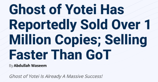 据tech4gamers报道,近日,一位消息人士透露,索尼最新的PS5独占游戏《羊蹄山之魂》首日销量已突破100万套,并且销售速度超过了前作《对马岛之魂》。