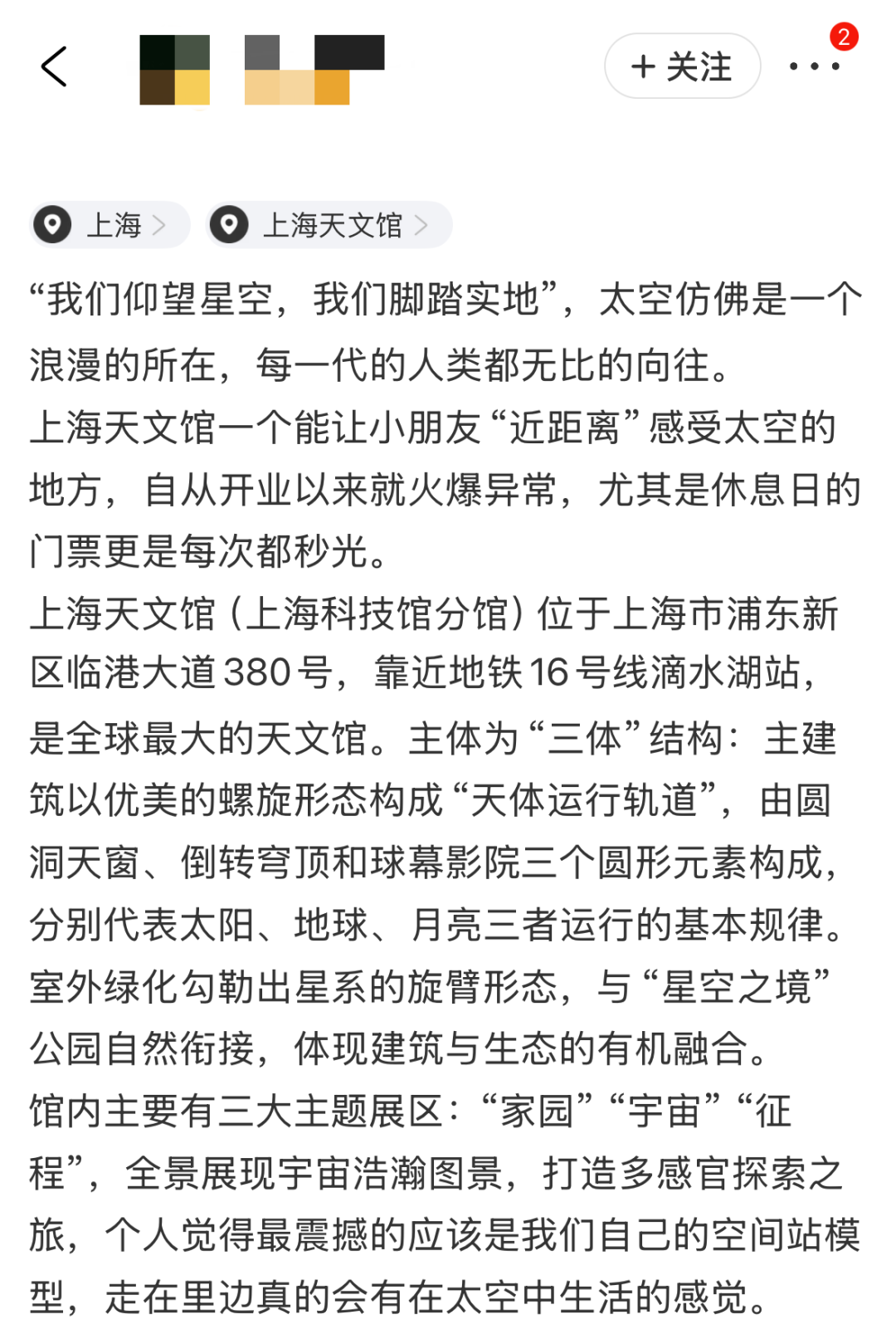 来源:科技日报综合上海天文馆、携程网友评论等