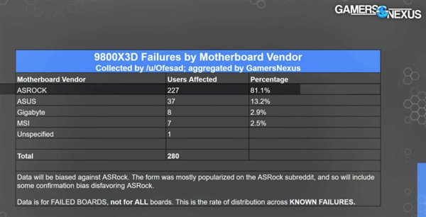 近日Gamers Nexus调查了与华擎主板相关的AMD CPU持续故障,虽然进行了BIOS六次更新,但与竞争对手相比故障发生率仍然较高,尤其是在睡眠或休眠等低功耗状态下。