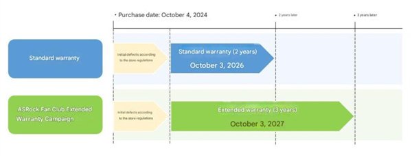 根据华擎日本的公告,凡是在2025年9月29日至12月31日期间,通过ASRock Fan Club完成注册的用户,其Intel Z890/B860或AMD X870/B850主板,可以享受额外一年的保修服务,即总共三年的保修期。