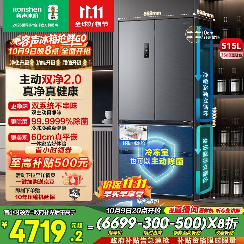 容声515L风冷冰箱直降1679元