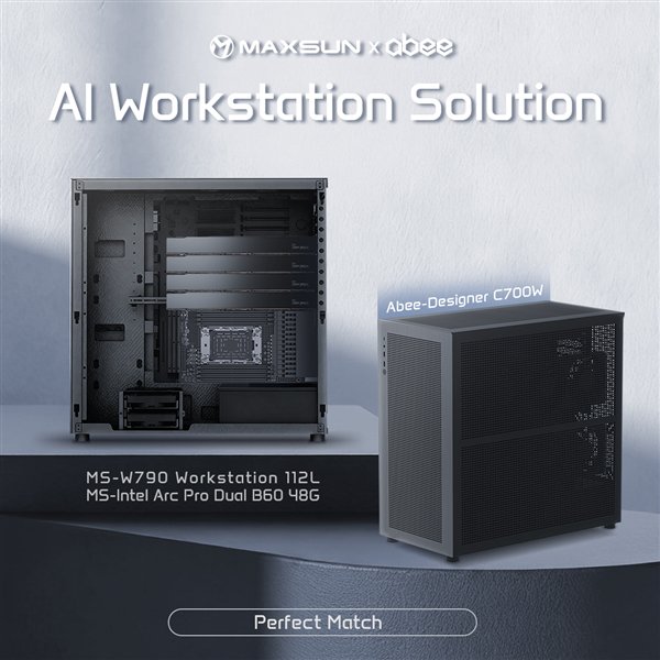 该工作站支持多达4块Intel锐炫Pro B60 48G Turbo GPU,这是一款专为AI工作负载、3D渲染和数据密集型处理设计的超强配置。