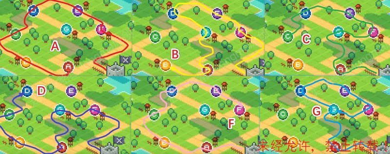 从城堡出发,经过六个不重复的字母,利用排除法逐一验证各字母作为终点的可能性,最终确定第六个字母不可能是。