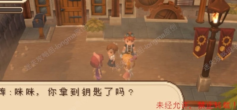 与右侧小女孩对话,先选我想要帮助你们,再选我只需要钥匙,之后连续选择是,最终打开宝箱取得图书馆钥匙。