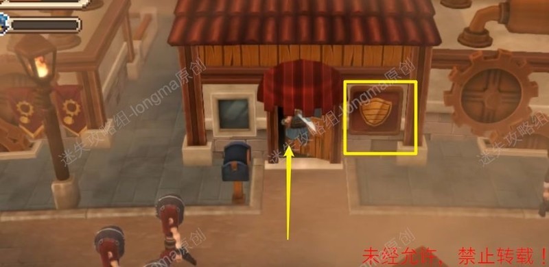 前往标有盾牌标志的武器店,深入店内寻获宝箱,开启后取得。