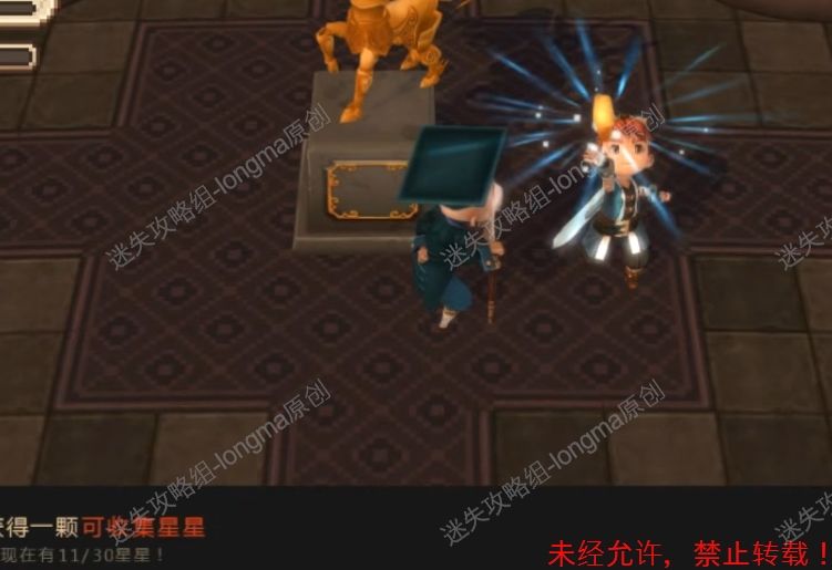 离开图书馆,返回旅馆的院子(有啤酒杯的房子),与右侧的小女孩交谈,将图书馆得到的书交予她,换取一枚星星。