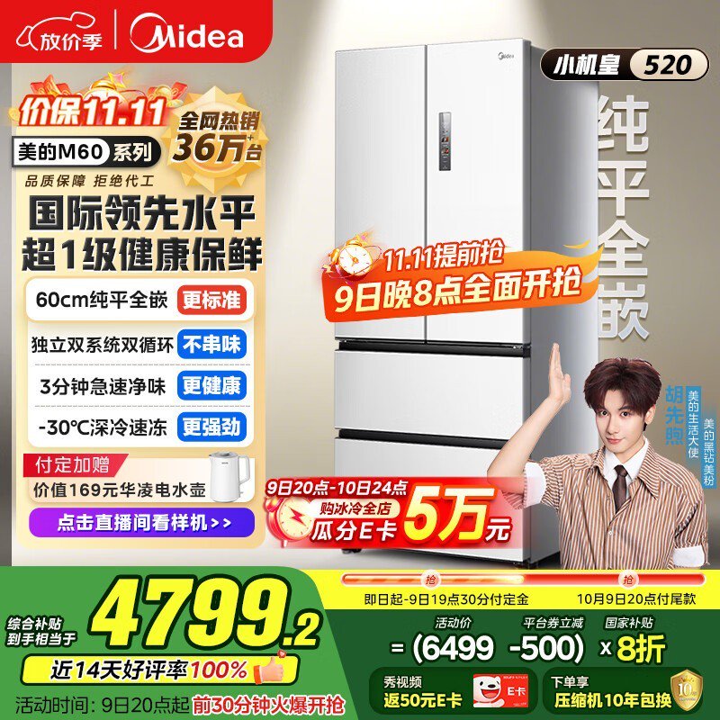 美的520升纯平全嵌冰箱