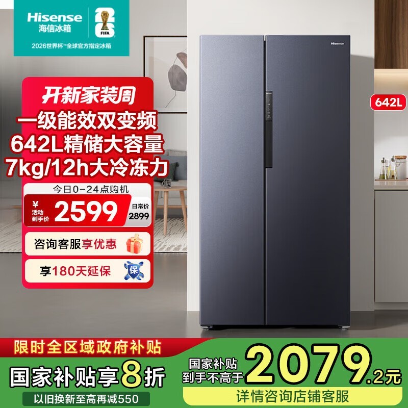 海信642L对开门冰箱直降700元