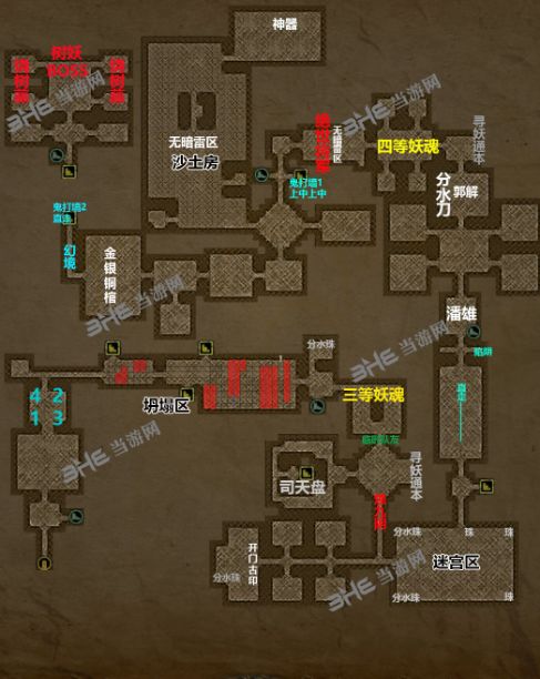 直接上大图吧,详细攻略已有他人分享。此地图最高探索度为129,我因懒惰未挖完所有沙土房。若你探索度不足, likely是沙土房或鬼打墙区域遗漏,建议各处走遍,尤其是塌陷区地下,走完一遍即可达成129。