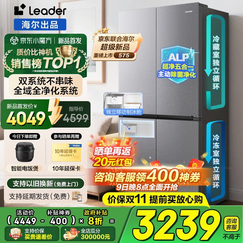 Leader 550L双系统冰箱直降2079元