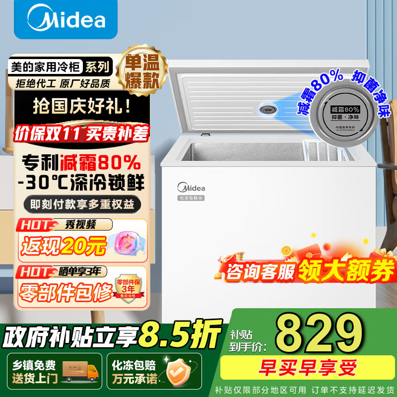 美的203L冷柜京东特惠,到手仅723元
