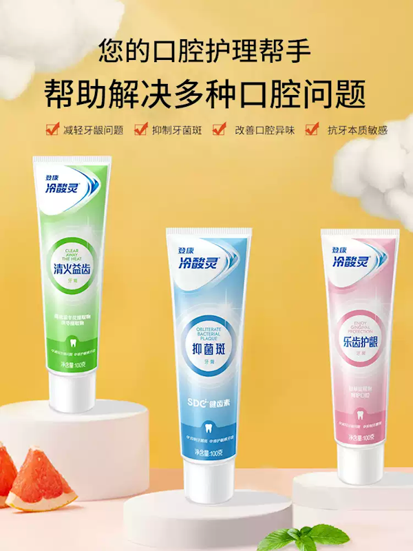 固齿护敏、清火益齿,不同气味的抗敏感牙膏,总有一款适合你,泵式设计,挤压出膏,简单卫生,清新口气。