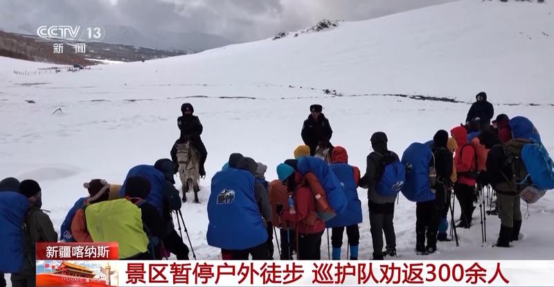 针对暴雪天气,喀纳斯景区发布了暂停开放户外徒步线路的相关公告,当地派出所组建巡护队,开展巡逻排查。