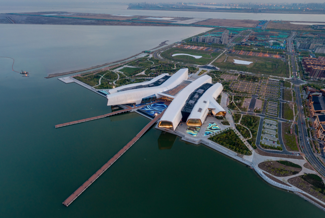 其建筑外形似“飞鱼入海”