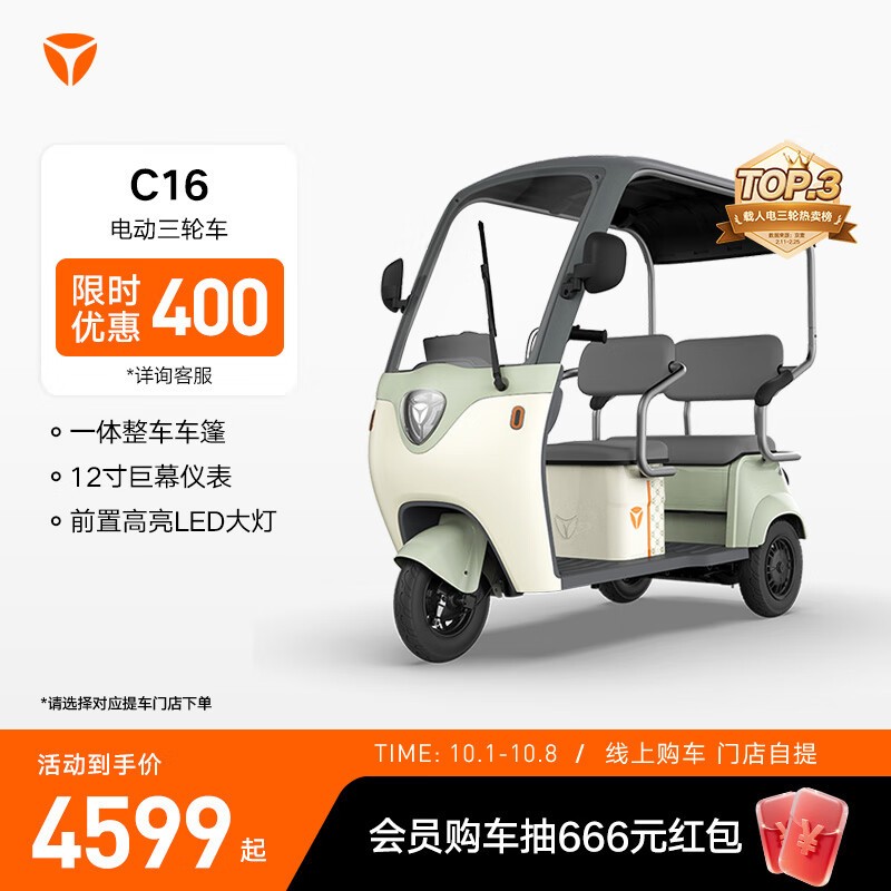雅迪C16青春版三轮车4599元抢购