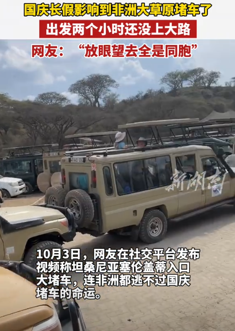 有游客调侃,“在国内没赶上国庆堵车,没想到在东非大草原体验到了,放眼望去还都是同胞”。