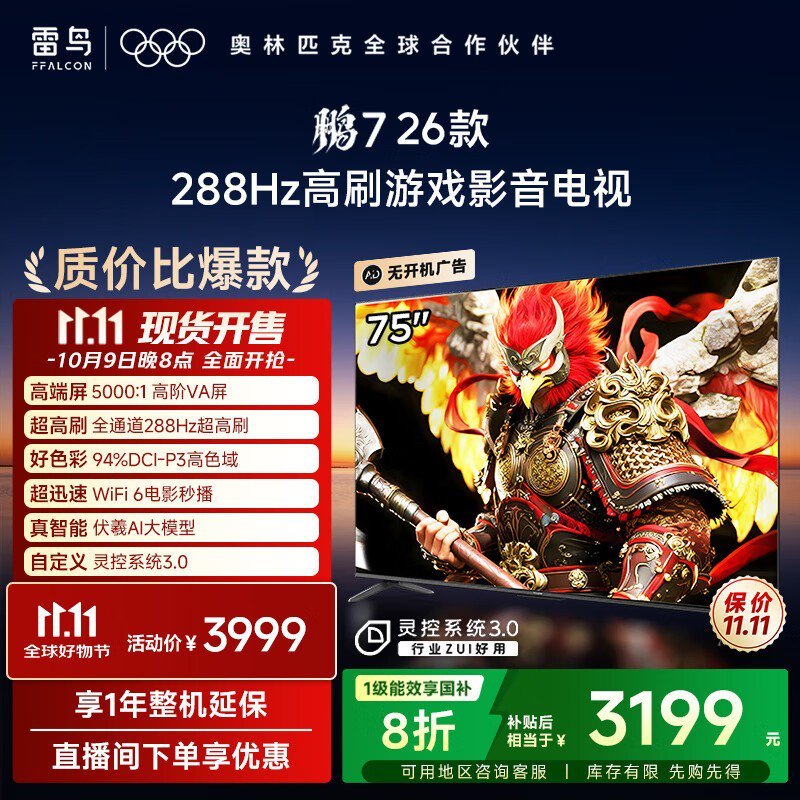 雷鸟 75S78A 液晶电视辽宁特惠2548元