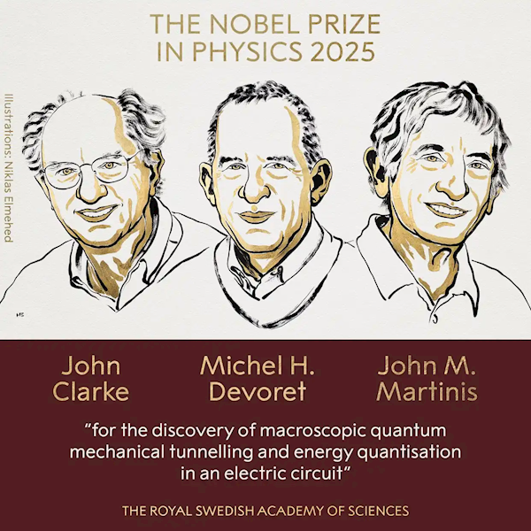 快科技10月7日消息,瑞典皇家科学院决定将2025年诺贝尔物理学奖授予——科学家约翰·克拉克、麦克·H·德沃雷特、约翰·M·马蒂尼,以表彰他们“发现电路中的宏观量子力学隧道效应和能量量子化”。