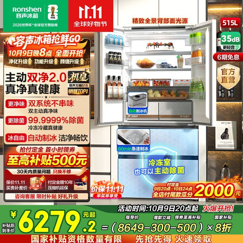 容声515L织影白冰箱预售,低至5999元