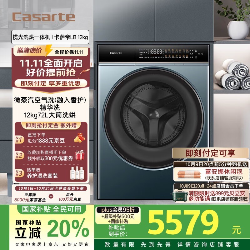 卡萨帝12公斤洗烘一体机预售低至5199元