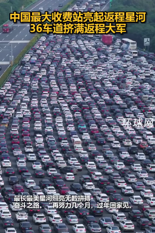 夜幕下,车灯连缀成 “流动星河”,绵延数公里。景象震撼全网。