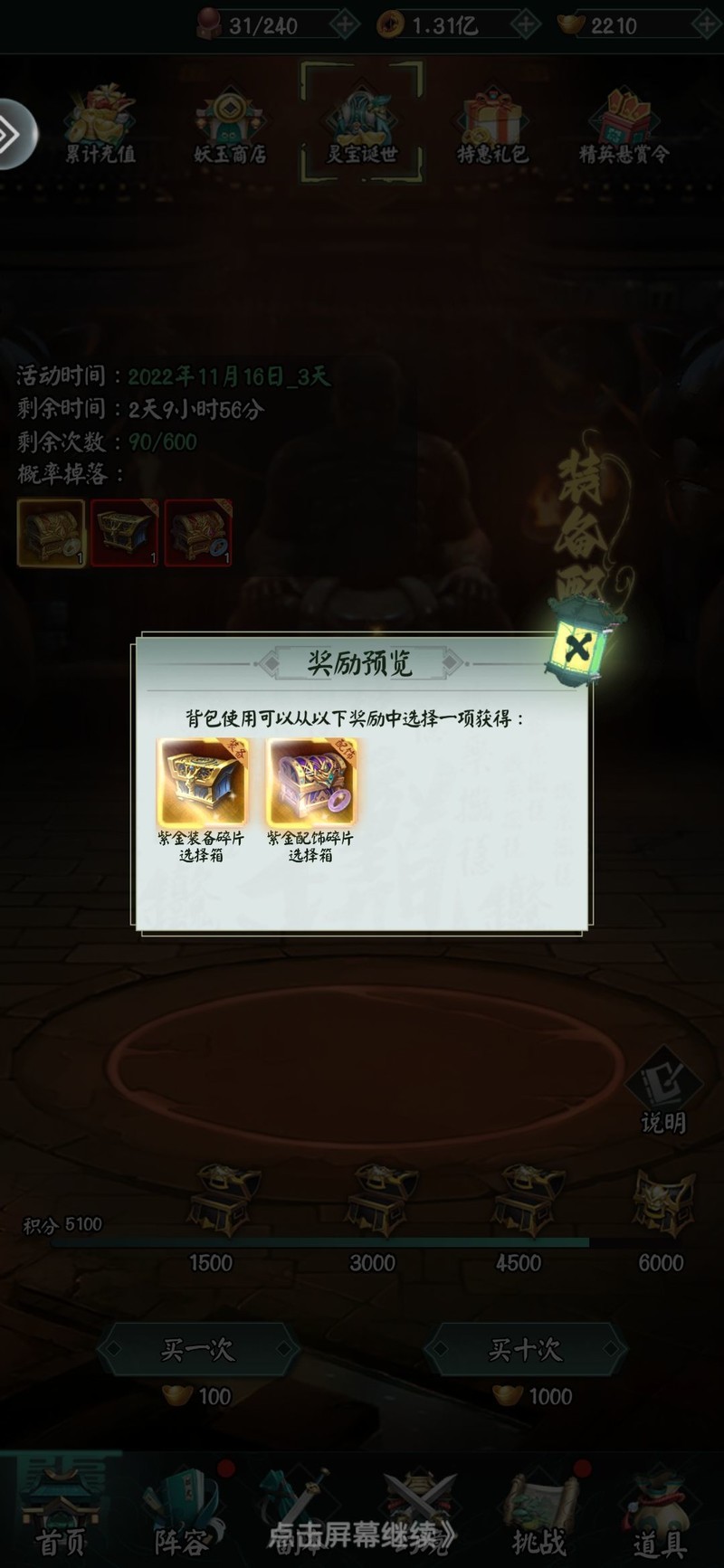 紫金灵符碎片,六万元宝可购,限购六百次。