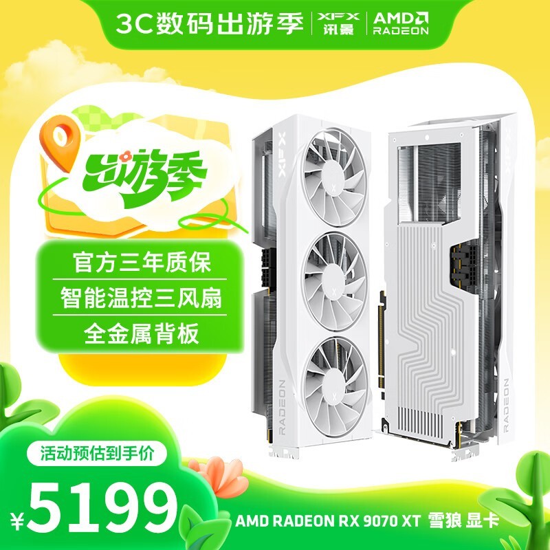 讯景RX 9070 XT雪狼16GB显卡直降100