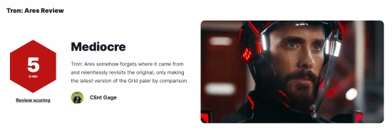 《创》系列新片《创:战神》媒体口碑已解禁,IGN仅给出5分的评价,称其“在某种程度上忘了自己的根源所在,却又一味地回溯原版影片”。