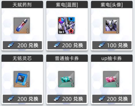 优先兑换药剂和蓝图,其次是无铭灵芯、UP抽卡券、普池抽卡券、头像、活跃数据、金币和灵脉石。