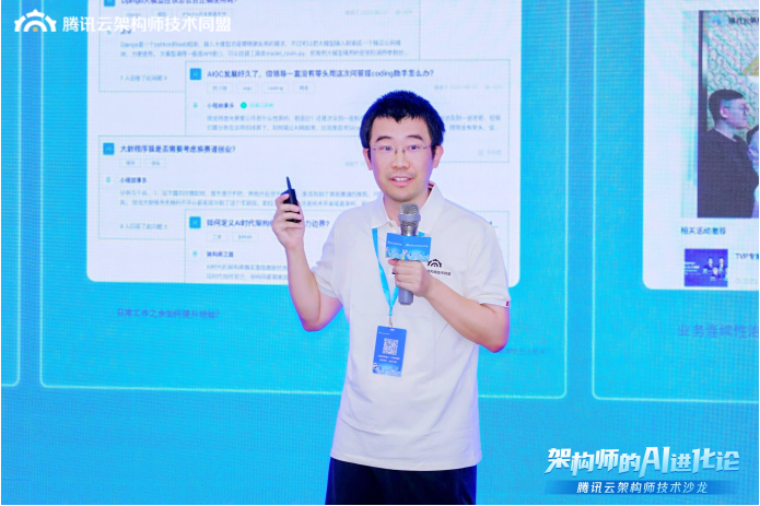腾讯云架构师技术同盟学习交流主席 沈剑带来《超越焦虑,重塑AI时代架构师的核心竞争力》的主题演讲。