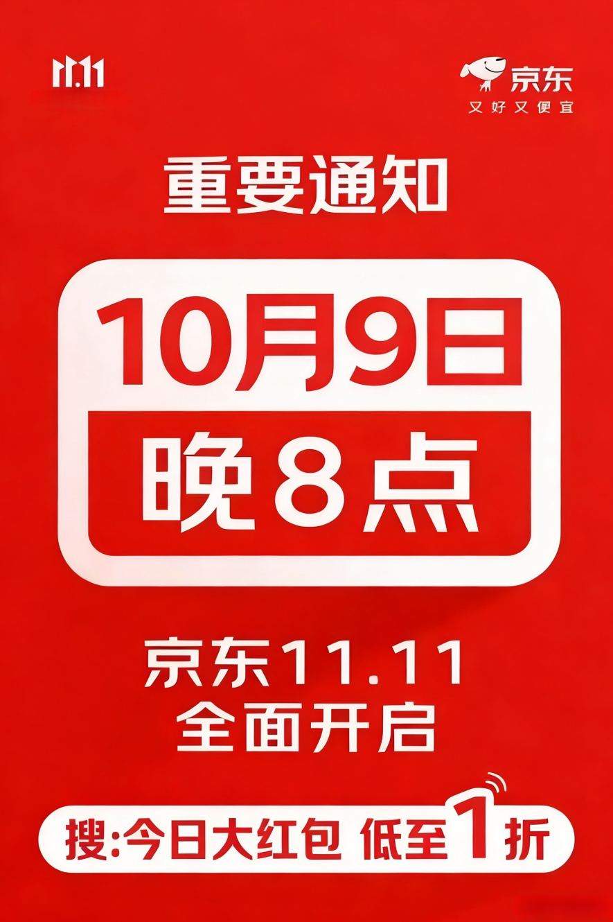 2025 京东双 11 不用慌,记住 “一个口令 + 一个公式 + 四个时刻” 就行 —— 现在打开京东 APP,搜【今日大红包】收藏口令,把心仪商品加购,10 月 9 日 20:00 准时开抢!不管是装修买家电、新人置装,还是长辈换智能设备,都能花最少的钱,买最实用的货,这波狂欢可别错过!