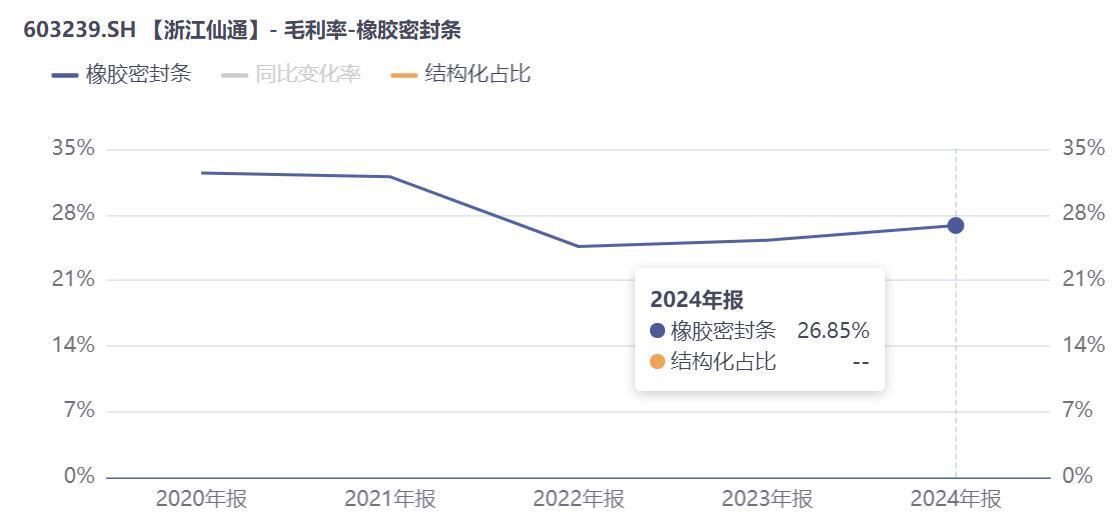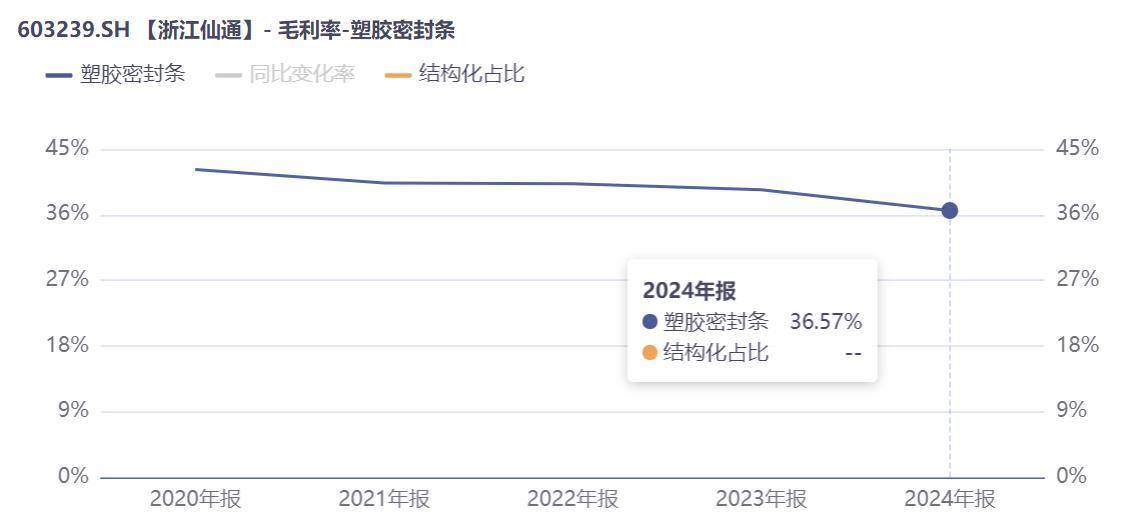 面对内卷日益加剧的行业现状,浙江仙通也难以独善其身。公司销售毛利率逐渐降低,尤其是两大传统优势产品橡胶密封条、塑胶密封条的毛利率均呈现明显下降趋势。