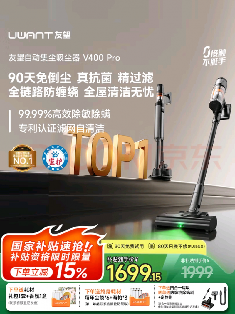 “买时容易修时难” 是很多人对吸尘器的顾虑,这也让 “哪个吸尘器品牌售后好” 成为选品关键。相较于部分品牌 “质保短、网点少” 的短板,友望在吸尘器品牌售后上给出了诚意方案:全系产品提供 2 年整机质保,中央维保,彻底解决了用户的维修顾虑;购买友望V400pro还能够获得终身赠送耗材的福利,双十一更有国家15%的补贴,福利多多。