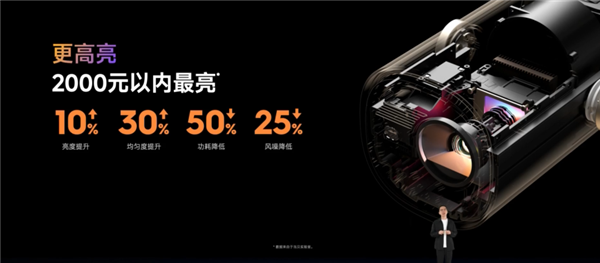 不仅如此,它还实现了10%的亮度提升、30%的均匀度提升,同时功耗降低50%、风噪降低25%,在画质与能耗、噪音的平衡上做到了极致,即便在光线较亮的环境下也能呈现清晰画面。