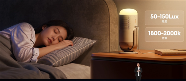 有意思的是,它还创新推出了氛围套装,加入助眠和氛围灯模式,亮度50-150Lux、色温1800-2000k的灯光设计,可在睡前营造舒适氛围。