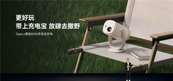 更贴心的是,它支持Type-C兼容65W充电宝供电,彻底摆脱电源束缚,让用户能“带上充电宝,放肆去撒野”,户外观影场景轻松解锁。