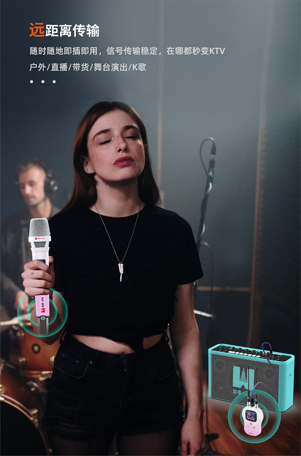 支持远距离信号传输,即使在舞台、会议室等大空间内自由移动也能始终保持传输顺畅。即插即用设计无需繁琐调试,新手也能快速上手,轻松完成连接,开机即可开唱。