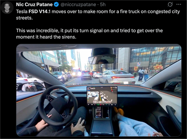 目前,部分 HW4车主已陆续收到 FSD v14 推送。首批获得推送的特斯拉车主表示,FSD v14自动泊车性能远超预期,甚至比真人驾驶员还厉害。
